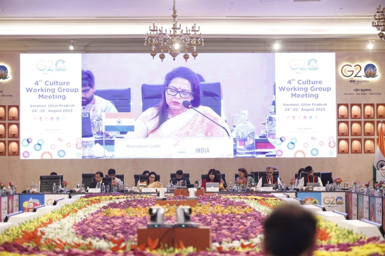 वाराणसी के नदेसर स्थित ताज होटल में गुरुवार से शुरू हुई तीन दिवसीय बैठक में जी-20 के सदस्य देशों, आमंत्रित देशों एवं अंतरराष्ट्रीय संगठनों के 170 प्रतिनिधि हिस्सा ले रहे हैं। शुक्रवार को बैठक के एक सत्र को केंद्रीय संस्कृति राज्यमंत्री लेखी ने संबोधित किया। बैठक में सभी प्रतिनिधियों की मौजूदगी में केंद्रीय संस्कृति मंत्रालय के अफसरों ने मसौदा घोषणा पर मंथन किया।