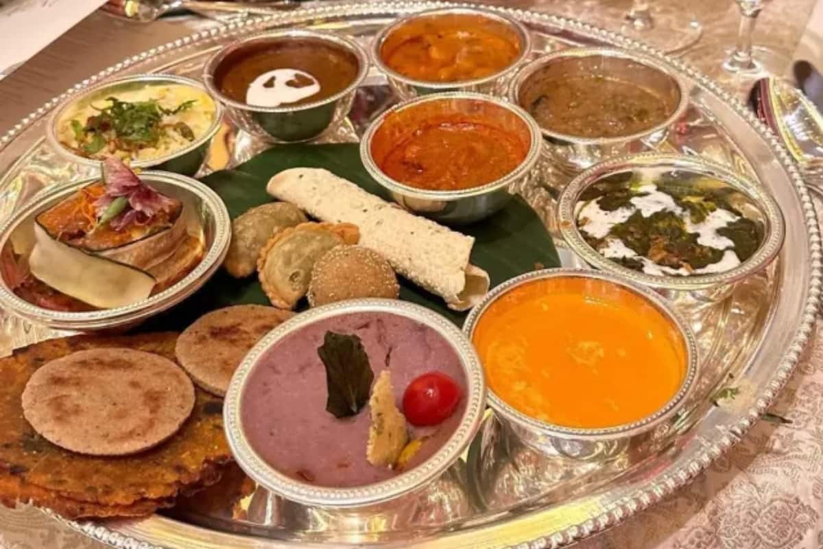 इस बार अंबानी परिवार ने इस बात का भी ख्याल रखा कि इस शाही समारोह में कोई कमी न रह जाए। मेहमानों के लिए शाही भोज भी आयोजित किया गया। एक्ट्रेस महीप कपूर ने इस इवेंट की कुछ खास तस्वीरें अपने इंस्टाग्राम पर शेयर की हैं, जिनमें वह बेहद खूबसूरत लग रही हैं। इसके साथ ही उन्होंने कार्यक्रम में शाही भोज की झलक भी दिखाई। तस्वीरों में चांदी की थाली में तरह-तरह के पकवानों की दावत देखी जा सकती है। चांदी की थाली में नौ अलग-अलग तरह की दाल और सब्जियां परोसी गई हैं। साथ ही इस थाली में गुजिया, मिठाई, पापड़, रोटी, परांठे भी शामिल थे। अंबानी की पार्टी में इस शाही धूमधाम को देखकर हर कोई दंग रह गया।