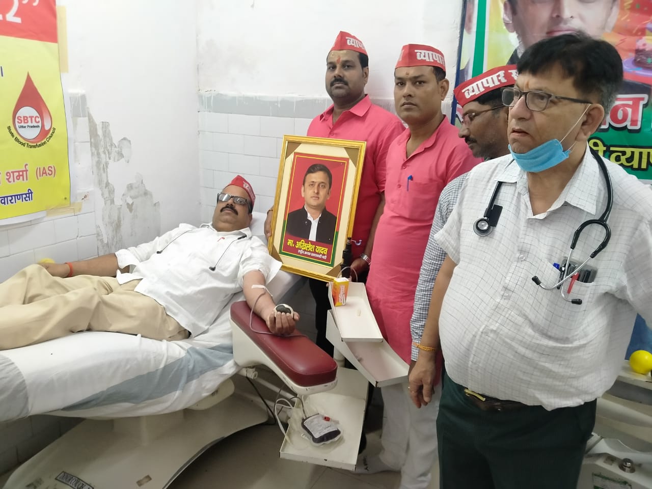 समाजवादी व्यापार सभा के महानगर अध्यक्ष रवि जायसवाल के नेतृत्व में पदाधिकारियों के साथ कुल 11 व्यापारियों ने रक्तदान किया। इस दौरान सभा के प्रदेश उपाध्यक्ष एवं पूर्वांचल प्रभारी प्रदीप जायसवाल ने कहा कि आज देश के लाखों नौजवानों, गरीबों, किसानों, मजदूरों, व्यापारियों एवं समाज के अंतिम व्यक्ति के चेहरे पर मुस्कान लाने वाले पूर्व मुख्यमंत्री अखिलेश यादव का जन्मदिन है। कार्यकर्ता रक्तदान करके और गरीब मरीजों में फल वितरित कर अपने नेता के दीर्घ और स्वस्थ जीवन के लिए प्रार्थना कर रहे हैं। बाबा श्री काशी विश्वनाथ से कार्यकर्ताओं ने प्रार्थना किया कि अखिलेश यादव हमेशा स्वस्थ प्रसन्नचित के साथ दीर्घायु और यशस्वी हों। रक्तदान में पूर्व जिला पंचायत अध्यक्ष संजय मिश्रा, महानगर अध्यक्ष रवि जायसवाल, महासचिव आशुतोष सेठ, रामपाल खरवार, रवि शंकर यादव, संजीव जायसवाल, राहुल जायसवाल, धर्मेन्द्र जायसवाल, अवधेश कसेरा, मुरली धर जायसवाल, मुकेश जायसवाल आदि शामिल रहे।