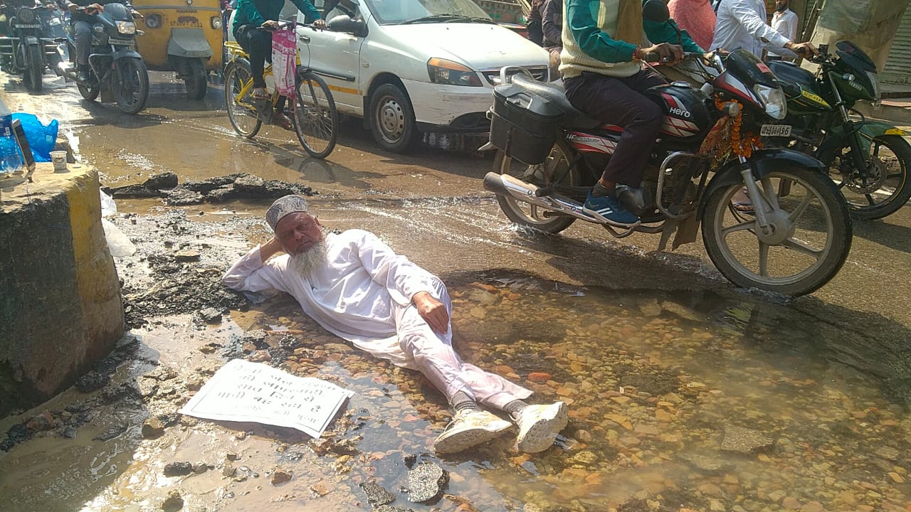 -बीच सड़क में पानी भरे गड्ढे में लेट कर पूर्व पार्षद ने किया था पर्दशन