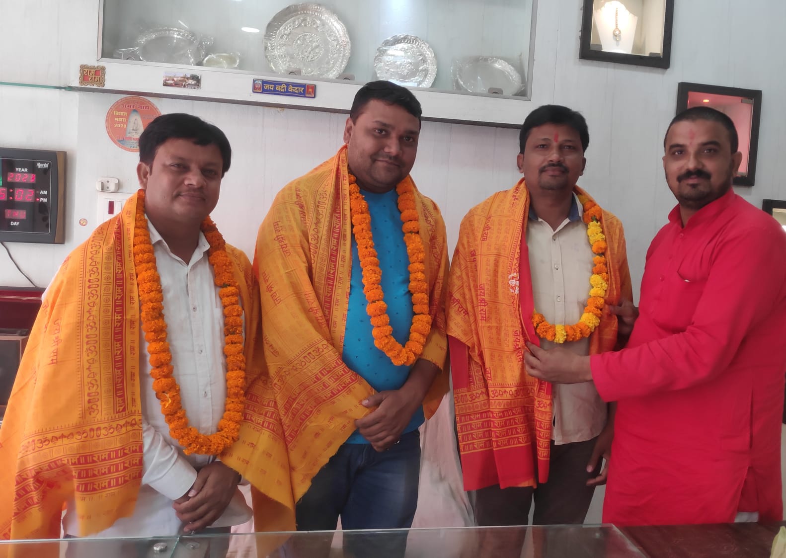 अखिल भारतीय कमलापुरी युवा वैश्य महासभा के प्रदेश महामंत्री राम प्रकाश ज्वेलर्स के शोरूम पर रवींद्र गुप्ता कमलापुरी राष्ट्रीय कार्यकारिणी सदस्य व प्रदेश अध्यक्ष पूर्व युवा ने अंगवस्त्र व माला पहनकर बधाई दी