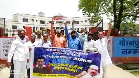 शनिवार को दिन में लगभग साढ़े ग्याहर बजे गोरखपुर में आम आदमी पार्टी ने जिलाधिकारी पर प्रदर्शन किया और अग्निपथ योजना के प्रति विरोध जताया। इस दौरान आप नेताओं ने अग्निपथ को देश के युवाओं को ठगने वाली योजना बताया है और युवाओं के भविष्य के प्रति घिर लापरवाही बरतने की बात कही। आप के केंद्रीय नेतृत्व के आह्वान पर प्रदर्शन में लगभग एक दर्जन पदाधिकारी और कार्यकर्ता शामिल हुए।