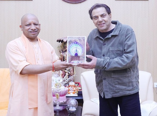लखनऊ(हि.स.)। फिल्म अभिनेता धर्मेंद्र ने शनिवार को उत्तर प्रदेश के मुख्यमंत्री योगी आदित्यनाथ से उनके सरकारी आवास पर मुलाकात की। इस दौरान मुख्यमंत्री ने उनका स्वागत किया।