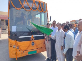 -विधायक वेद प्रकाश गुप्त, नगर आयुक्त विशाल सिंह ने हरी झंडी दिखाकर बसों को रवाना किया