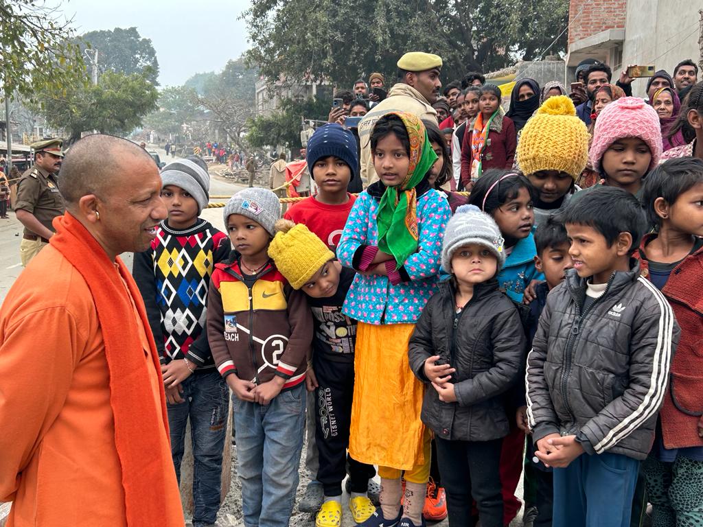 अयोध्या (हि.स.)। मुख्यमंत्री योगी आदित्यनाथ का बालप्रेम किसी से छिपा नहीं है। शुक्रवार को अयोध्या आगमन पर भी मुख्यमंत्री ने रामपथ पर बच्चों से हालचाल जाना था, तो शनिवार को प्रधानमंत्री नरेन्द्र मोदी जब अयोध्या पहुंचे तो यहां भी मुख्यमंत्री प्रधानमंत्री आवास योजना के लाभार्थियों के बच्चों से मिलने लगे। सर्द मौसम में बच्चे अपने बीच आदित्यनाथ को पाकर भाव विह्वल हो गए। मुख्यमंत्री ने बच्चों से पहले उनका नाम पूछा, फिर बोले- स्कूल जाते हो, क्या-क्या पढ़ाई करते हो। यह प्रश्न सुनकर मुस्कुराते बच्चों ने उनके प्रश्नों का जवाब भी दिया। मुख्यमंत्री ने यहां कई बच्चों से बातचीत की।