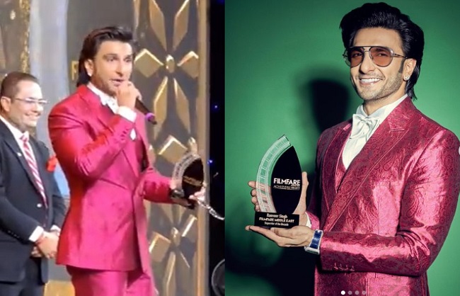 फिल्म अभिनेता रणवीर सिंह को हाल ही में दुबई में हुए फिल्मफेयर मिडिल ईस्ट अचीवर्स नाइट 2022 में सम्मानित किया गया। इस दौरान अभिनेता अवार्ड लेते हुए काफी भावुक हो गए। उन्होंने यह अवार्ड अपने माता-पिता को समर्पित किया और अपने संघर्ष के दिनों को याद करते हुए कहा, ”12 साल पहले जब मैं पोर्टफोलियो बनाने जा रहा था। हर एक्टर का एक पोर्टफोलियो होता है कि यहां-वहां लेकर जाएंगे, सभी को दिखाएंगे। पोर्टफोलियो कोटेशन आया 50 हजार रुपये। मैंने पापा से कहा ये तो महंगा है। तब पापा ने कहा कि फिक्र मत कर तेरा पापा बैठा है यहां। रणवीर ने ये भी कहा कि मम्मी आपको याद है न कि छोटे वाले घर में मैं कितना बुरा ऑडिशन देता था। और आपकी गोद में सिर रखकर कहा था कि मम्मा मुझे नहीं पता कि मेरा ये सपना कभी पूरा होगा या नहीं।”