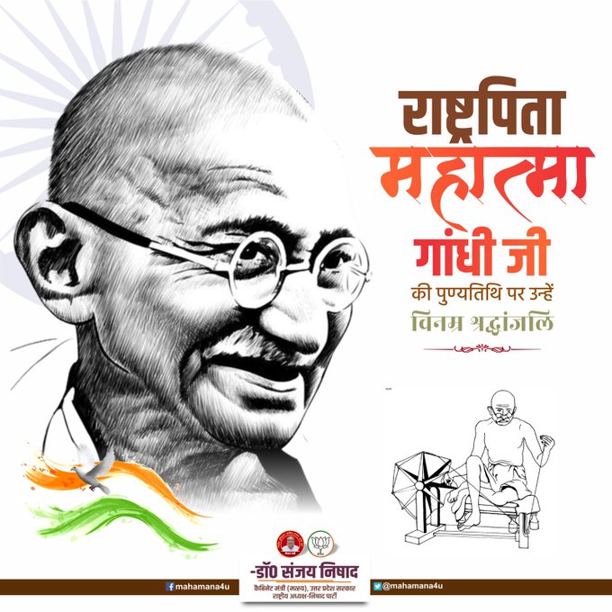अहिंसा व शांति के अद्वितीय प्रतिमान, महान भारतीय स्वतंत्रता संग्राम सेनानी राष्ट्रपिता महात्मा गांधी की पुण्य तिथि पर विनम्र श्रद्धांजलि। डॉ. संजय निषाद ने अपने दूसरे ट्वीट में कहा कि आज हो रहे उत्तर प्रदेश विधान परिषद सदस्य (स्नातक व शिक्षक) चुनाव के लिए समस्त सम्मानित मतदाताओं से अपील है कि लोकतंत्र के इस महापर्व में अपने संवैधानिक कर्तव्यों का निर्वहन अवश्य करें। आपका मत बहुमूल्य है। याद रहे पहले मतदान फिर जलपान।