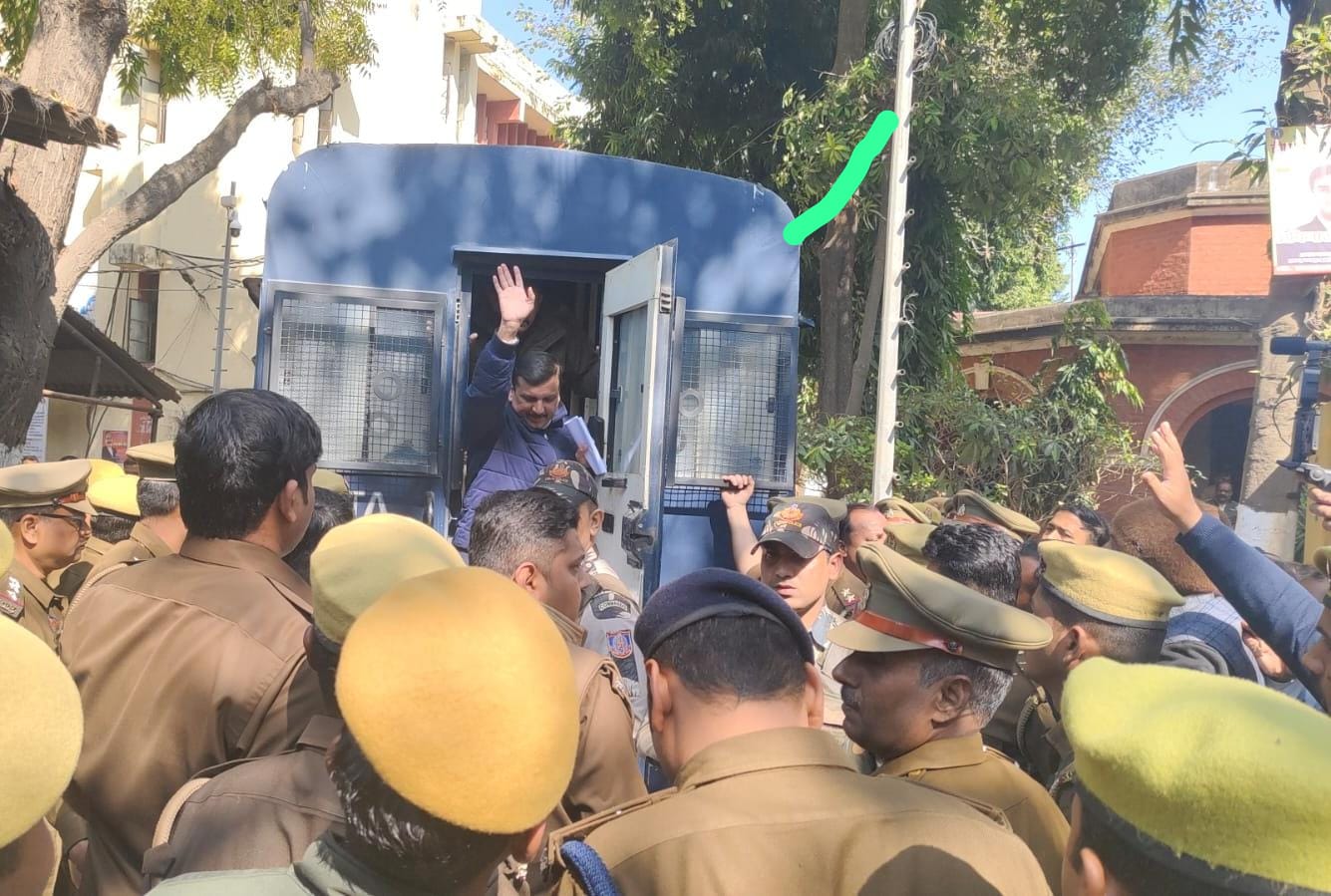 इस बीच संजय सिंह का सुरक्षा कवच काफी बढ़ गया था। कोतवाली नगर पुलिस के साथ जीआरपी-आरपीएफ ने सुरक्षा घेरा बढ़ाया। टोपी और झंडा लिए कार्यकर्ताओं को प्लेटफार्म से हटाया गया। पुलिस ने संजय सिंह को पहले आरपीएफ दफ्तर लेकर गए फिर यहां से ब्रज वाहन से दीवानी कोर्ट ले जाया गया। यहां पर भी सैकड़ों की संख्या में पार्टी कार्यकर्ता मौजूद थे। जिन्होंने सुरक्षा की दृष्टि कई थानों की फोर्स भी दीवानी पर लगाई गई थी।