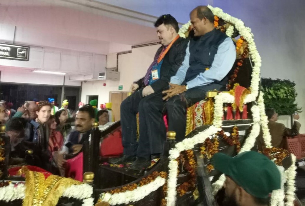 प्रतिनिधिमंडल के स्वागत के लिए रास्ते भर लोक कलाकारों ने विभिन्न भारतीय विधाओं का प्रदर्शन कर विदेशी मेहमानों का दिल जीत लिया। विदेशी मेहमानों का जगह-जगह हर चौराहे पर स्वागत किया गया। खेरिया मोड़ चौराहे पर विदेशी मेहमानों का मारवाड़ी, राजस्थानी डांस कर कलाकारों ने स्वागत किया। वहीं फतेहाबाद रोड के दोनों तरफ हजारों लोगों ने हाथ हिलाकर बस में सवार प्रतिनिधियों का पूरे उत्साह के साथ अभिवादन किया। स्कूली बच्चे ने हाथ मे रंग-बिरंगे झंडे, गुब्बारे, तिरंगा लेकर विदेशी मेहमानों का स्वागत किया।
