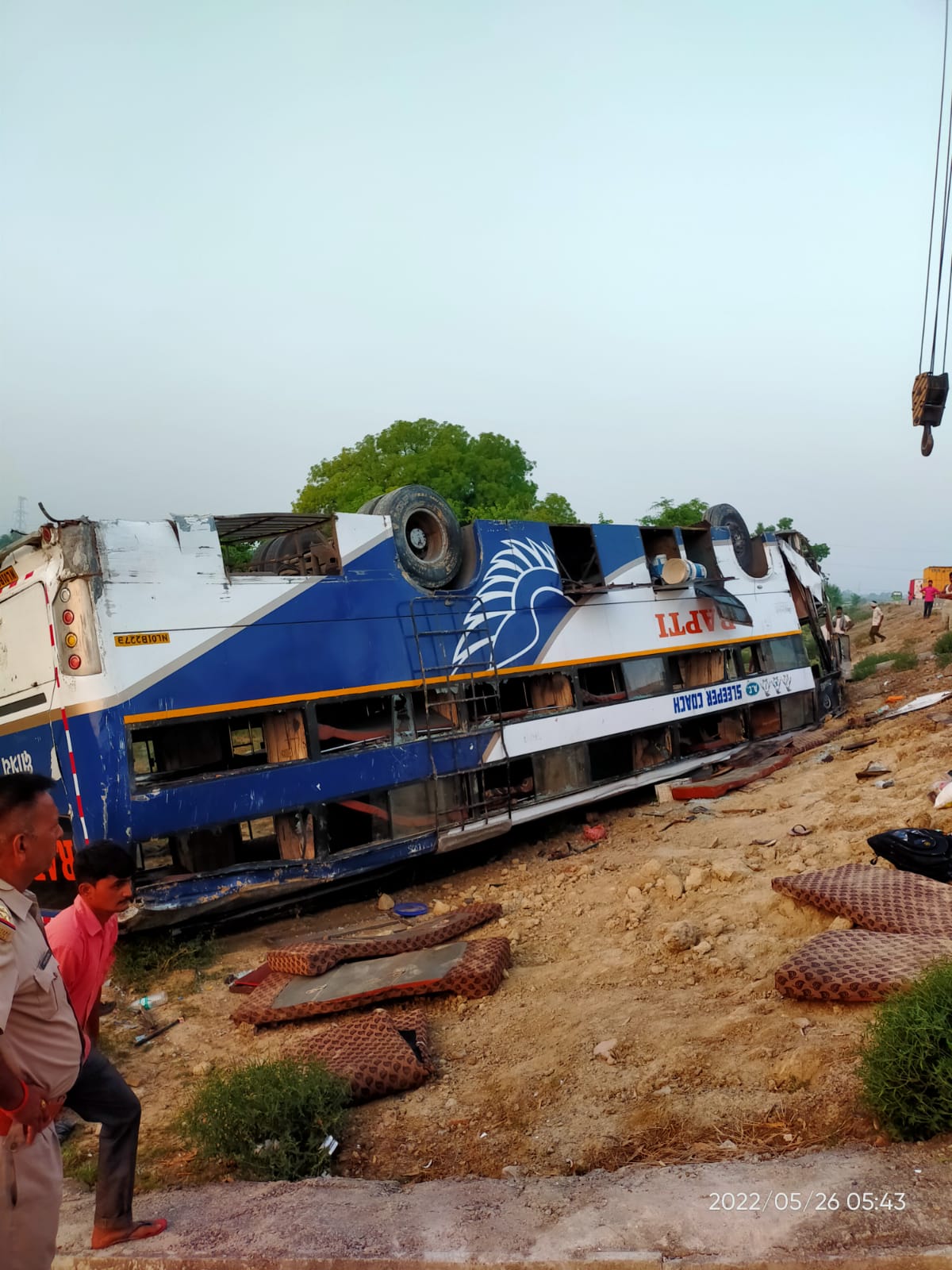 जिले के उमरैन चौकी के पास एक्सप्रेस वे पर उस वक्त एक बड़ा हादसा हो गया जब बलरामपुर से राजकोट जा रही एक निजी बस अचानक अनियंत्रित होकर 136 पोल के पास पटलकर जा गिरी। दुर्घटनाग्रस्त बस की जानकारी देते हुए अपर पुलिस अधीक्षक शिष्टपाल ने बताया कि बस में लगभग 40 लोग सवार थे जिनमें 16 लोग घायल हो गए थे। घटना की जानकारी जैसे ही एरवाकटरा थाना प्रभारी को मिली तत्काल वह घटनास्थल पर पहुंचे और सभी घायलों को बस से बाहर निकलवा कर एक्सप्रेस वे की एम्बुलेंस से सैफई इलाज के लिए भिजवाया गया।