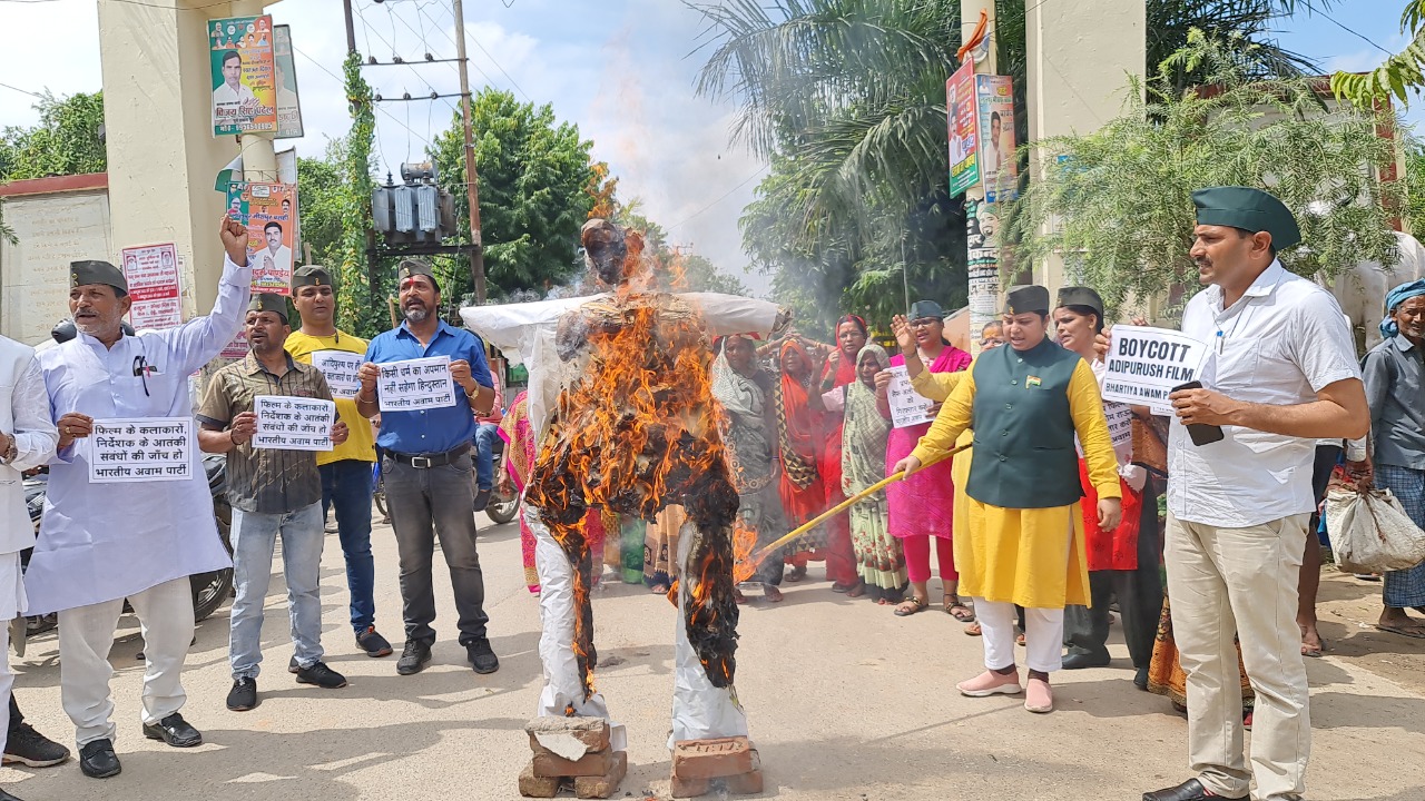 वाराणसी (हि.स.)। बॉलीवुड की आदिपुरुष फिल्म के खिलाफ लोगों में आक्रोश बढ़ रहा है। नाराज भारतीय अवाम पार्टी के कार्यकर्ताओं ने गुरुवार को लमही गेट पर फिल्म निर्देशक और कलाकारों का पुतला फूंका। इस दौरान पार्टी की राष्ट्रीय अध्यक्ष नजमा परवीन ने कहा कि बॉलीवुड ने आदिपुरुष फिल्म बनाकर फिर से अभिव्यक्ति की आजादी और कला के नाम पर हिन्दू धर्म को अपमानित करने का काम किया है।