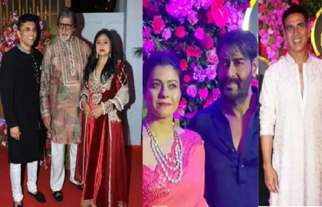 बिग बी प्रिंटेड कुर्ता और पायजामा में नजर आए। उन्होंने पूजा भी की। इस पार्टी में ऋतिक रोशन भी पहुंचे। पार्टी में उन्होंने काली टी-शर्ट, जैकेट और डेनिम कैरी किया था। आंखों पर चढ़ा चश्मा ऋतिक को कूल लुक दे रहा था। फिल्म अभिनेता अक्षय कुमार ने भी ऑफ व्हाइट रंग का कुर्ता पायजामा पहना था। पार्टी में पहुंचे अजय देवगन ने नेवी ब्लू कुर्ता पायजामा पहना था, तो वहीं काजोल हल्के गुलाबी रंग की खूबसूरत सी साड़ी में नजर आईं।