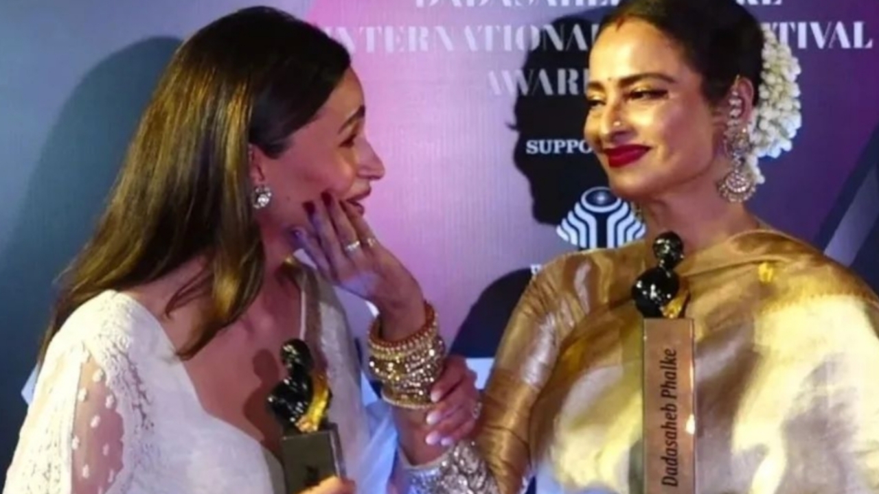 दादासाहेब फाल्के अवॉर्ड समारोह की तस्वीरें और वीडियो इस वक्त सोशल मीडिया पर वायरल हो रहे हैं। इसमें बॉलीवुड एक्ट्रेस रेखा और आलिया के वीडियो ने सबका खूब ध्यान खींचा। अवॉर्ड फंक्शन में आलिया ने व्हाइट साड़ी पहनी हुई थी।रेखा ने गोल्डन साड़ी पहनी हुई है।