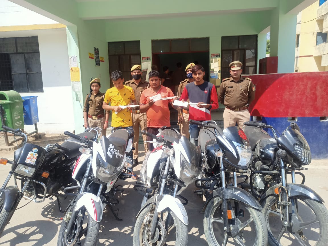 बताया कि हम लोग रेकी करके अलग अलग जिलों से मोटरसाइकिल चोरी किया करते और गाड़ियों को कचौरा रेलवे पुल के पास छुपा देते है और उचित ग्राहक मिलने पर बेच दिया करते है। बदमाशों की निशानदेही पर पुलिस ने मौके से पांच बाइक बरामद की है। पुलिस ने बदमाशों के पास से बाइक समेत तमंचा कारतूस मोबाइल फोन और दो चाकू बरामद कर जेल भेज दिया है।