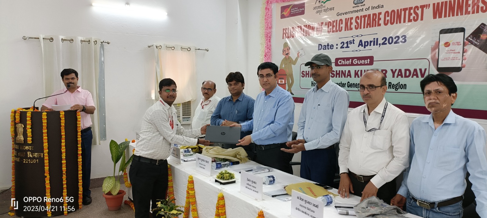 पोस्टमास्टर जनरल शुक्रवार को प्रधान डाकघर के सभागार में इण्डिया पोस्ट पेमेंट्स बैंक द्वारा आयोजित उत्कृष्ट डाककर्मियों के सम्मान समारोह को सम्बोधित कर रहे थे। समारोह में पोस्टमास्टर जनरल ने सी.ई.एल.सी. प्रतियोगिता के विजेता ग्रामीण डाक सेवकों को रेफ्रिजरेटर और लैपटॉप देकर सम्मानित किया और उनकी हौसला आफजाई की।