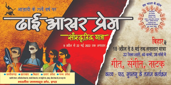 इप्टा झांसी इकाई महासचिव डॉक्टर मुहम्मद नईम ने बताया कि यात्रा का शुभारंभ रायपुर में सांस्कृतिक रैली, सुप्रसिद्ध कबीर भजन गायक पदम् प्रहलाद टिपानिया की मनमोहक गायकी, छत्तीसगढ़ी लोकसंस्कृति के परिचायक नाचा विधा के कलाकारों के लोकगायन व गम्मत (नाटक) की दमदार प्रस्तुति के साथ हुआ। आज़ादी के 75 साल के मौके पर निकलने वाली ‘‘ढाई आखर प्रेम की सांस्कृतिक यात्रा’’ असल में स्वतंत्रता संग्राम के गर्भ से निकले स्वतंत्रता – समता – न्याय और बंधुत्व के उन मूल्यों की तलाश की कोशिश है, जो आजकल नफ़रत, वर्चस्व और दंभ के तुमुल कोलाहल में डूब से गये हैं। हालांकि वो हमारे घोषित संवैधानिक आदर्शों में झिलमिलाते हुये हर्फ़ों के रूप में, गांधी की प्रार्थनाओं और डॉ आंबेडकर की प्रतिज्ञाओं के रूप में हमारी आशाओं में अभी भी चमक रहे हैं। इन्हीं का दामन पकड़कर हमारे किसान, मजदूर, लेखक, कलाकार, मानवाधिकार कार्यकर्ता गांधी जी के अंहिसा और भगत सिंह के अदम्य शौर्य के सहारे अपनी कुर्बानी देते हुए संवैधानिक मूल्यों की रक्षा में डटे हैं।