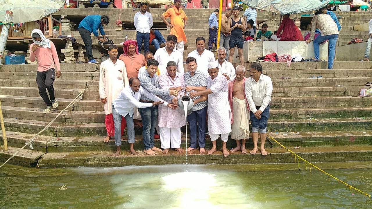 वाराणसी (हि.स.)। फादर्स डे पर रविवार को उत्तर प्रदेश भाईचारा कमेटी के कार्यकर्ताओं ने अध्यक्ष प्रमोद वर्मा के नेतृत्व में प्राचीन दशाश्वमेध घाट पर मां गंगा का पंचमेवा से दुग्धाभिषेक एवं आचमन किया। विधि विधान से गंगा पूजन कर कार्यकर्ताओं ने देश में अमन और शांति के लिए मां गंगा से प्रार्थना की।