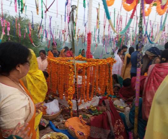 इससे पहले सुबह पांच बजे से व्रती महिलाओं का गोमती तट के घाटों पर जाना शुरू हो गया था। वे सब माई गीत गाते हुए आगे बढ़ी चली जा रही थीं। सूर्योदय से पहले ही गोमती तट पर हजारों की संख्या में पूजा करने आए भक्त इक्ट्ठा हो गए थे। लक्ष्मण मेला स्थल का छट घाट, पक्कापुल का सांझियां घाट, झूलेलाल घाट, मनकामेश्वर घाट सहित तट पर बने हुए अन्य घाटों पर पूजा हो रही थी। इसके अलावा कुकरैल, एचएएल व लोगों ने अपने घरों में भी कृत्रिम जलाशय बनाकर पूजा अर्चना की।