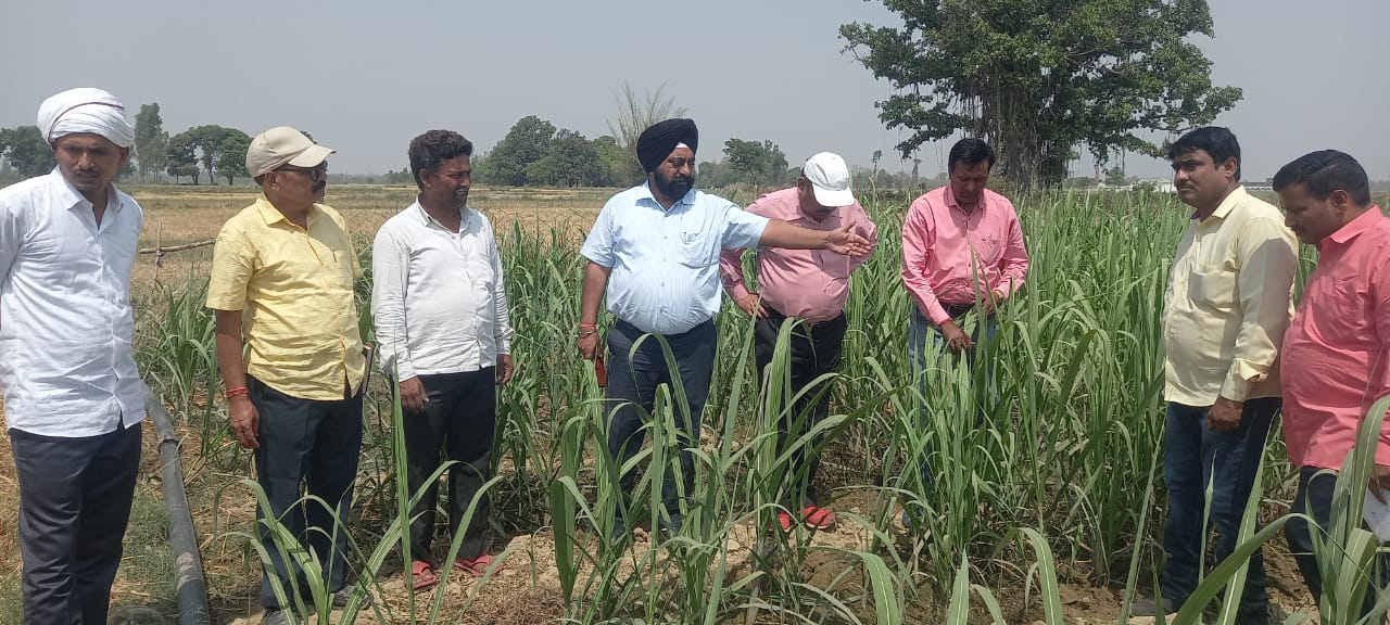 उप गन्ना आयुक्त द्वारा ग्राम जोगीवीर में ट्रेंच विधि से बोये गए गन्ना प्रजाति कोशा .15023 व कोशा.13235 ग्राम हुसैनाबाद के मोहम्मद सईद द्वारा गन्ने के ऊपरी एक हिस्से को बीज के रूप में ट्रेंच विधि से गन्ना प्रजाति को.0118 का शरदकालीन गन्ने के साथ आलू सहसफल के रूप में बुवाई किया गया था जिसमें 18 कुन्टल आलू का उत्पादन हुआ प्रदर्शन प्लाट का निरीक्षण किया जिसका जमाव,कल्ले व बढ़वार बहुत ही अच्छा पाया गया तथा प्रमोद चौधरी के 3 हेक्टेयर खेत में 5 फीट की दूरी पर दिए गए नवीन गन्ना प्रजाति को.15023,0118 कोशा.13235 व कोलख.14201जिससे विभाग के सहयोग से कृषक ने ड्रिप इरीगेशन सिस्टम भी लगाया है फसल बहुत ही अच्छा पाया गया तथा शरदकालीन गन्ने के साथ सहफसल के रूप में आलू की बुवाई किया गया था जिसमें 15 कुन्टल आलू का उत्पादन हुआ। निरीक्षण के समय चोटी बेधक व अंकुर बेधक कीट का वर्तमान में कोई प्रकोप नहीं पाया गया।