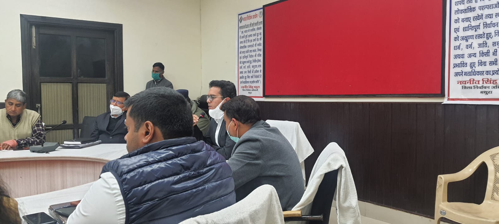 मथुरा(हि.स.)। जिलाधिकारी नवनीत सिंह चहल ने गुरुवार देर शाम प्रेक्षकों एवं राजनैतिक दलों के साथ बैठक की। बैठक में उन्होंने चुनाव के दौरान निष्पक्षता, पारदर्शिता के साथ भयमुक्त वातावरण में कराने के लिए जरूरी दिशा निर्देश दिए।