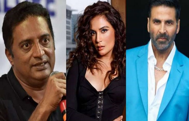 इस मामले में फिल्म इंडस्ट्री भी दो गुटों में बटती नजर आ रही है। फिल्म अभिनेता अनुपम खेर से लेकर अक्षय कुमार तक ने जहां ऋचा के इस ट्वीट को आपत्तिजनक बताया तो वहीं फिल्म अभिनेता प्रकाश राज खुलकर ऋचा चड्ढा के समर्थन में सामने आये है। प्रकाश राज ने ऋचा चड्ढा का समर्थन करने के साथ ही अक्षय कुमार को आड़े हाथ लिया है। प्रकाश राज ने ट्वीट कर लिखा-‘अक्षय के ट्वीट को रिट्वीट करते हुए लिखा, ‘आपसे ये उम्मीद नहीं थी अक्षय कुमार… ऋचा चड्ढा हमारे देश के लिए आपसे ज्यादा प्रासंगिक है सर। वहीं इससे पहले भी प्रकाश राज ने ऋचा के गलवान ट्वीट पर लिखा था- ‘हम आपके साथ हैं ऋचा चड्ढा । हम जानते हैं कि आपके कहने का क्या मतलब था।’