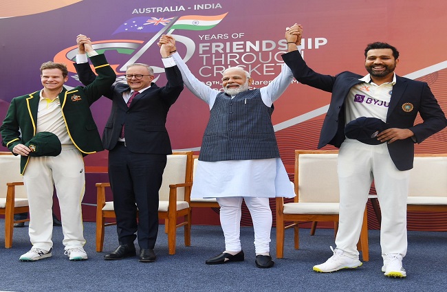 ऑस्ट्रेलियाई प्रधानमंत्री अल्बनीज ने ट्वीट कर लिखा कि हमने भारतीय प्रधानमंत्री नेरेन्द्र मोदी के साथ अहमदाबाद में क्रिकेट के जरिए दोस्ती के साथ 75 साल पूरे होने का जश्न मनाया