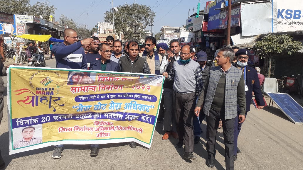 औरैया, (हि.स.)। मतदाताओं को जागरूक करने के उद्देश्य से स्वीप प्रभारी डिप्टी कलेक्टर रमेश यादव के नेतृत्व में शुक्रवार को शहर में व्यापारी नेताओं और समाज सेवियों ने एक रैली निकाली। नगर पालिका इंटर कॉलेज से शुरू हुई यह रैली शहर के विभिन्न मार्गों से होती हुई जिला अस्पताल तक पहुंची जहां डिप्टी कलेक्टर रमेश यादव ने शहरवासियों से आगामी बीस फरवरी 2022 को होने वाले विधान सभा के तीसरे चरण में बढ़-चढ़कर मतदान करने की अपील की।