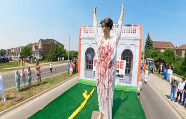 कनाडा के ब्रैम्पटन क्षेत्र में सिख समाज ने लंबी शोभा यात्रा के रूप में जुलूस निकाला था। इसमें सिख धर्म से जुड़ी तमाम झांकियां थीं। इन झांकियों के बीच ही खालिस्तान समर्थक सक्रिय हो गए और एक झांकी में इंदिरा गांधी की हत्या का दृश्य दिखाया गया। इसमें इंदिरा गांधी की तरह एक महिला को हाथ ऊपर किये खड़ा किया गया और सुरक्षा कर्मियों द्वारा उन्हें ही मारते दिखाया गया। इसके बाद जश्न मनाने की बात भी झांकी का हिस्सा है। जिस ट्रक पर यह झांकी दिखाई गयी है, उसमें इस घटनाक्रम को बदला बताते हुए 1984 में हुए सिख नरसंहार को न भूलने की बात कही गयी है।