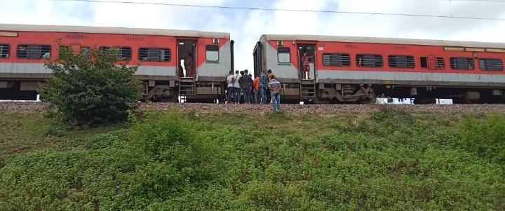 झांसी (हि.स.)। हजरत निजामुद्दीन से चलकर तिरुपति जा रही एपी सम्पर्क क्रांति एक्सप्रेस (12708) शुक्रवार को झांसी रेल मंडल में बबीना और खजराह के बीच दो हिस्सों में विभाजित हो गई। इसकी जानकारी होते ही ट्रेन में सफर करने वाले यात्रियों में हड़कम्प मच गया। हालांकि बड़ा हादसा टल जाने से विभागीय अधिकारियों ने राहत की सांस ली। इस पूरे घटनाक्रम के दौरान ट्रेन 2 घंटे 20 मिनट खड़ी रही।