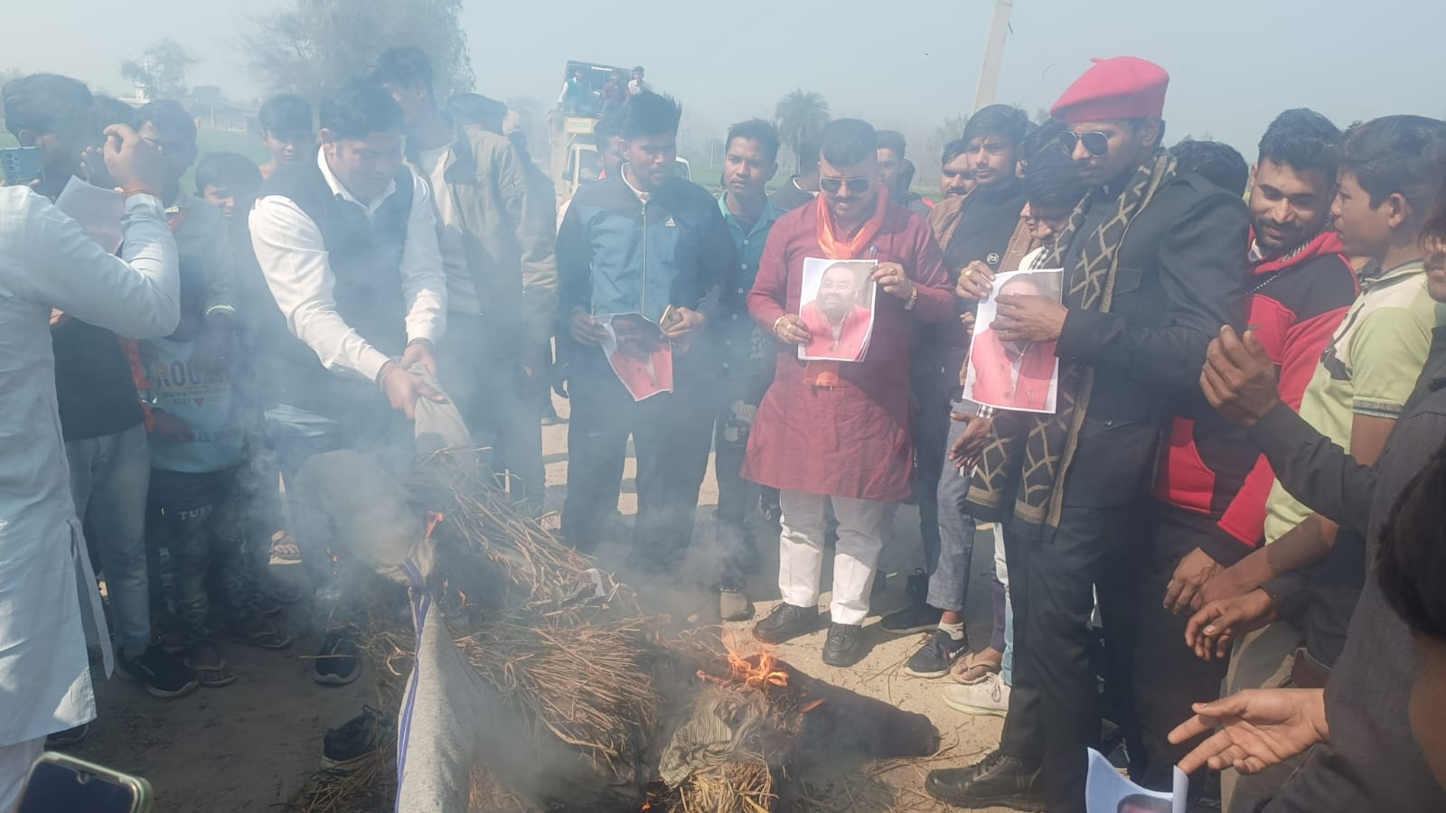 मुरादाबाद (हि.स.)। रविवार को मुरादाबाद में करणी सेना ने हिन्दुओं के सुप्रसिद्ध ग्रंथ श्रीरामचरितमानस मानस पर अशोभनीय टिप्पणी के विरोध में कटघर थाना क्षेत्र के महमूद चौराहे पर समाजवादी पार्टी के राष्ट्रीय महासचिव व पूर्व कैबिनेट मंत्री स्वामी प्रसाद मौर्य का पुतला फूंका। इस दौरान सभी प्रदर्शनकारियों ने स्वामी प्रसाद मौर्य की गिरफ्तारी की मांग की।
