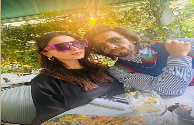 रॉकी और रानी की प्रेम कहानी में रणवीर सिंह उनके को-स्टार हैं। करण जौहर ने शूटिंग के दौरान फुरसत के कुछ पलों की एक तस्वीर अपने सोशल मीडिया अकाउंट पर शेयर की है। तस्वीर में आलिया और रणवीर सिंह खाने की टेबल पर बैठे हैं और दोनों फंकी सनग्लासेस में काफी कूल दिखाई दे रहे हैं।