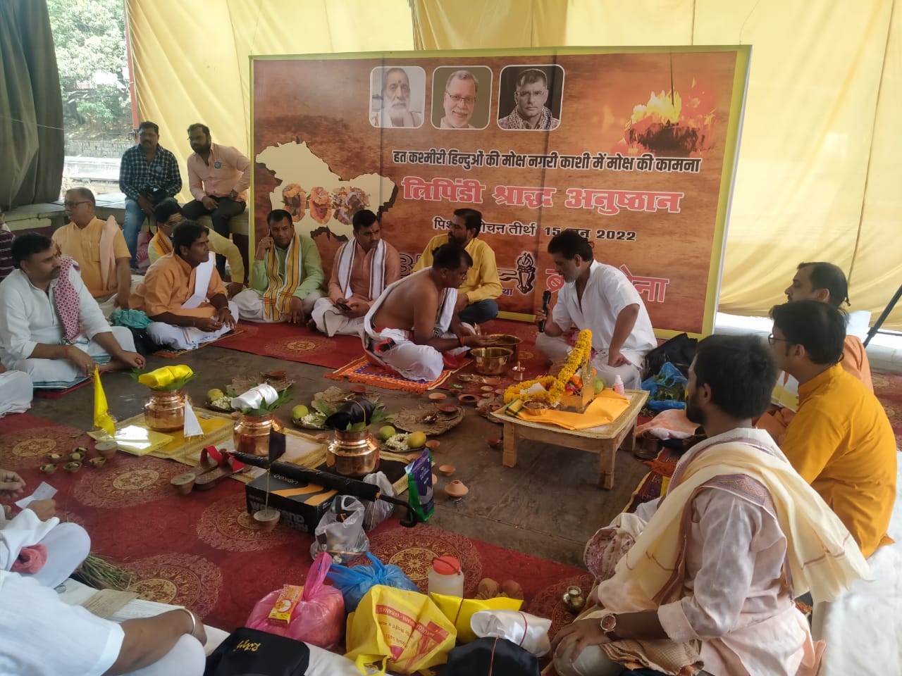 सामाजिक संस्था आगमन और ब्रह्म सेना के संयुक्त तत्वावधान में आयोजित दिन भर चलने वाले विशेष अनुष्ठान में फिल्म अभिनेता अनुपम खेर भी शामिल होंगे। देश के अलग अलग राज्यों से आए विद्वान और सन्त इस विशेष अनुष्ठान के साक्षी बने। इस अनुष्ठान में मारे गये कश्मीरी ब्राह्मणों के परिजन भी शामिल हुए।अनुष्ठान में संस्था के संस्थापक डॉ. संतोष ओझा मुख्य जजमान रहे। काशी के विद्वान ब्राह्मणों के उपस्थिति में ये अनुष्ठान संपन्न हुआ।