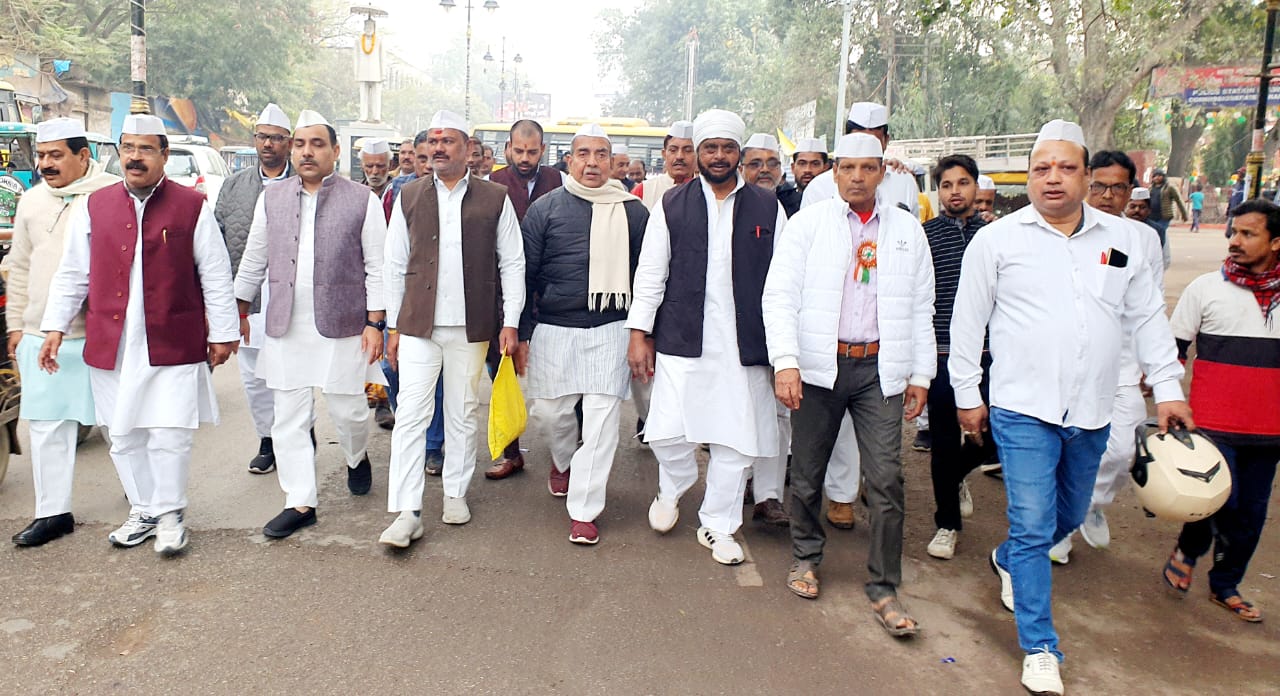 वाराणसी (हि.स.)। भारत जोड़ो यात्रा के बाद कांग्रेस का एक और अभियान शुरू हुआ है। दो महीनों तक चलने वाले हाथ से हाथ जोड़ो महाअभियान को सफल बनाने के लिए पार्टी की जिला और महानगर इकाई जुट गई है। शुक्रवार से जिला अध्यक्ष राजेश्वर सिंह पटेल व महानगर अध्यक्ष राघवेन्द्र चौबे के नेतृत्व में टाउनहाल मैदागिन से महात्मा गांधी व माँ कस्तूरबा को नमन कर महाअभियान की शुरुआत हुई। कार्यकर्ताओं ने टाउनहाल से लोहटिया स्थित पूर्व प्रधानमंत्री लाल बहादुर शास्त्री की प्रतिमा तक मार्च कर आमजन से जुड़ने का संकल्प लिया। महानगर अध्यक्ष राघवेंद्र चौबे ने बताया कि 30 जनवरी से पार्टी कार्यकर्ता वाराणसी शहर के सभी 100 वार्डो में अभियान शुरू कर हर घर में दस्तक देंगे। यात्रा से समाज के सभी वर्गों को कांग्रेस से जोड़ने की कोशिश की जाएगी। इस अभियान की शुरुआत 26 जनवरी तक हुई है। 25 मार्च तक सभी ब्लाकों पर पार्टी ये अभियान चलायेगी। लोगों तक राहुल गांधी का संदेश कार्यकर्ता पहुंचायेंगे। साथ ही केंद्र की मोदी सरकार की विफलताओं से जनता को रूबरू कराएंगे। अभियान में कांग्रेस कार्यकर्ता बूथ लेवल तक सम्पर्क साधेंगे। अभियान के प्रचार के लिए पार्टी सोशल मीडिया ट्विटर, फेसबुक, इंस्टाग्राम, यूट्यूब, व्हाट्सएप आदि सभी स्तरों का इस्तेमाल कर रही है।