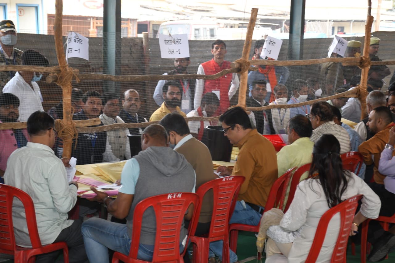 कानपुर (हि.स.)। विधानसभा चुनाव 2022 के चुनाव की मतगणना मंगलवार को कड़ी सुरक्षा के बीच सुबह आठ बजे से शुरू हुई। गल्ला मंडी में बने मतगणना स्थल पर 10 सीटों पर उतरे विभिन्न दलों के उम्मीदवारों की मतगणना टेबल पर गिनती बैलेट पेपर से किया गया। 30 मिनट के बाद ईवीएम मशीनों से मतों की गिनती जारी की गई।