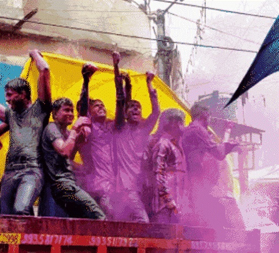 कानपुर (हि.स.)। उप्र के औद्योगिक नगरी कानपुर के ऐतिहासिक होली गंगा मेला में सोमवार सुबह ध्वजारोहरण के बाद खूब अबीर-गुलाल उड़ रहा है। महानगर वासी एक बार फिर रंगों से सराबोर हो गए। शहर में विभिन्न स्थानों पर अबीर, गुलाल के साथ रंगों की फुहार से मेले में पहुंचे लोग रंगीन हो गए।