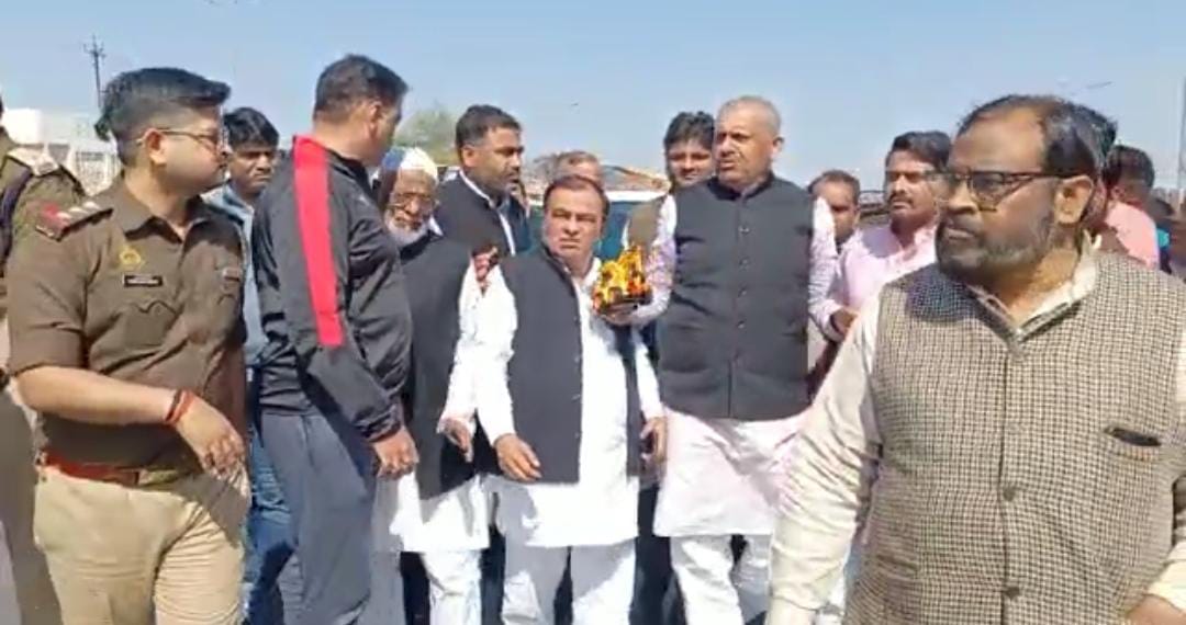 पार्टी के निर्देश पर विधायक अमिताभ बाजपेई, हसन रूमी, पूर्व पार्षद हरिओम पाण्डेय सहित कई पार्टी के पदाधिकारी कानपुर देहात के लिए निकले। सचेंडी हाइवे पर पुलिस ने उन्हें रोक लिया। जब वे धरने पर बैठकर नारेबाजी करने लगे तो पुलिस ने विधायक सहित सभी को हिरासत में लेकर राजकीय विद्यालय में ले गए।