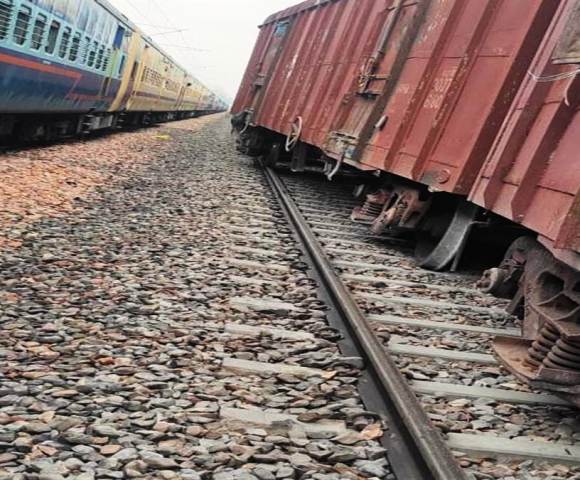 कानपुर(हि.स.)। चौबेपुर रेलवे स्टेशन के पास मंगलवार को मथुरा जा रही मालगाड़ी डिरेल हो गई। इससे मालगाड़ी के दो डिब्बे बेपटरी हो गये और गनीमत रही कि बड़ा हादसा नहीं हो सका, हालांकि डिरेल होने से करीब पांच सौ मीटर का ट्रैक खराब हो गया, जिसकी मरम्मत की जा रही है। वहीं मालगाड़ी के डिरेल होने से यातायात बाधित हो गया और कासगंज पैसेंजर के साथ छपरा एक्सप्रेस क्रमश: मंधना स्टेशन और चौबेपुर स्टेशन पर करीब दो घंटे खड़ी रहीं।
