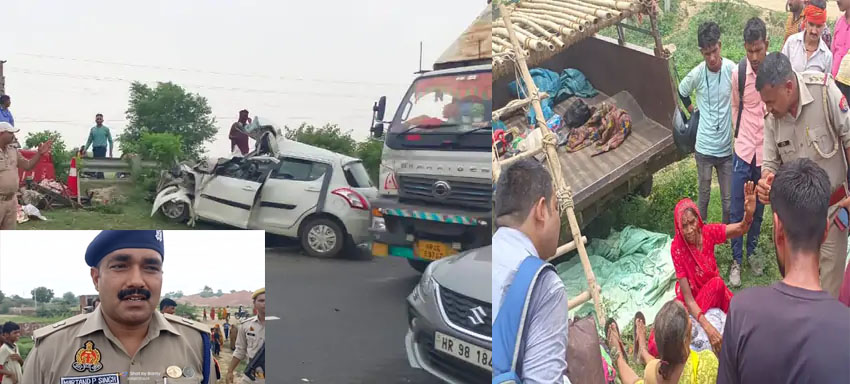 मथुरा के गोवर्धन सप्तकोसीय परिक्रमा करने के बाद मध्यप्रदेश थाना पौह के गांव शेरपुर निवासी 50 लोग ट्रैक्टर-ट्रॉली से सोमवार की सुबह वापस लौट रहे थे। रैपुराजाट पुलिस चौकी क्षेत्र से कुछ दूरी पर तेज गति से आई एक कार ट्रैक्टर-ट्रॉली में जा टकरायी। कार सवार में सवार पांच में से तीन लोगों की दुर्घटना में मौत हो गई। पुलिस ने कागजों के आधार पर शिनाख्त करते हुए शवों को पोस्टमार्टम के लिए भेजा है।