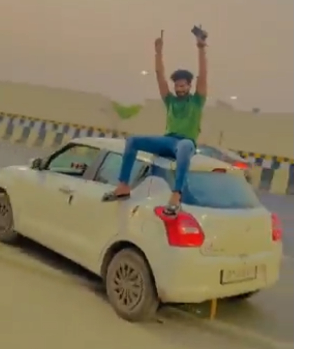 एसपी यातायात रामानंद कुशवाहा ने बताया कि सोशल मीडिया पर एक वीडियो वायरल हुआ। इसमें कार की छत पर अपनी जान जोखिम में डालकर एक युवक स्टंट बाजी करते हुए डांस करता हुआ दिखाई दे रहा। यह कार विपिन कुमार पुत्र सुरेंद्र कुमार के नाम पर रजिस्टर्ड है, जिनका यातायात नियमों से खिलवाड़ किए जाने के आरोप में ऑनलाइन 5000 का चालान कर दिया गया है।