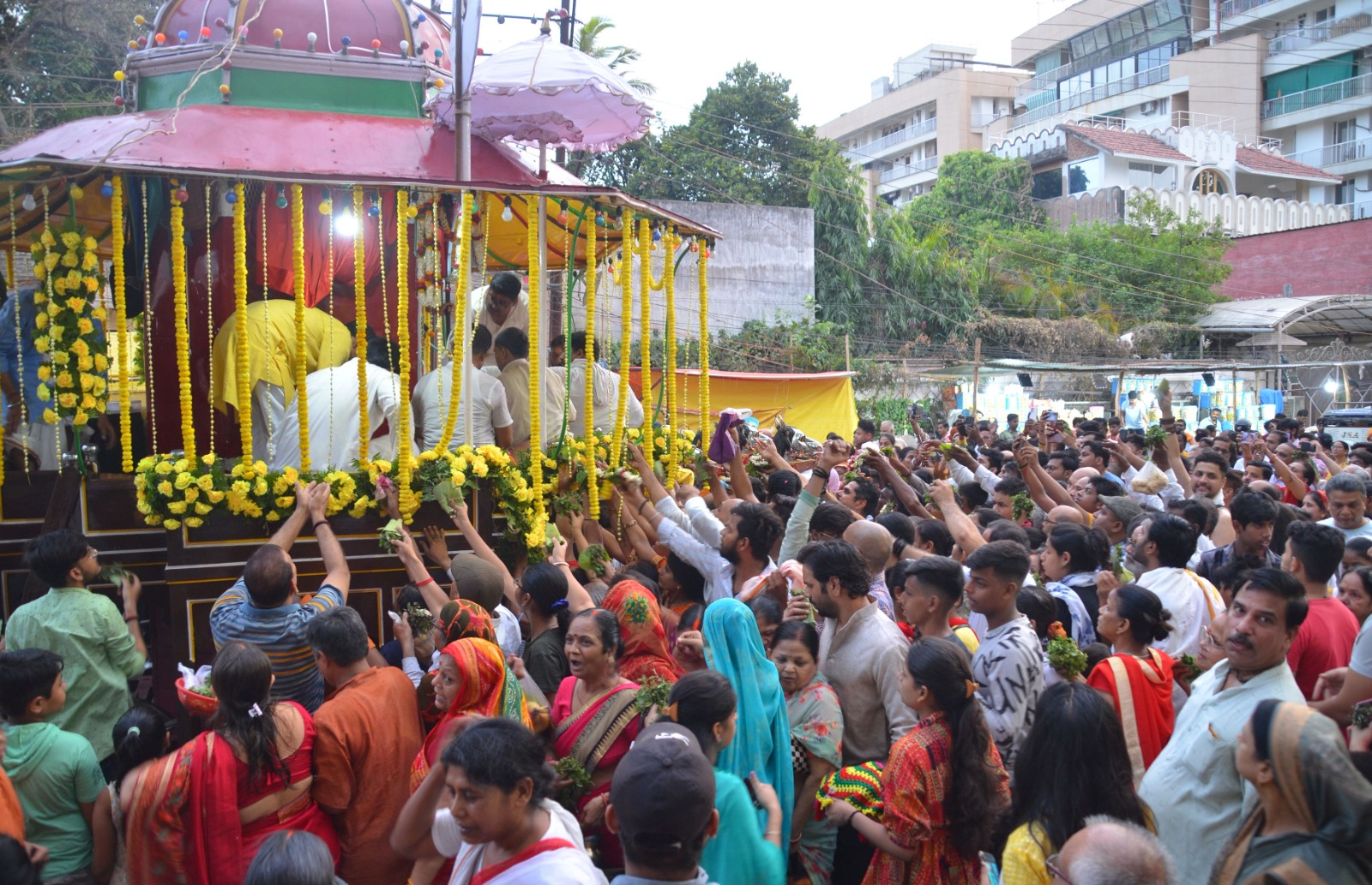 इसके पहले भोर में भगवान जगन्नाथ, भैया बलभद्र और बहन सुभद्रा की मंगला आरती पुजारी की देखरेख में हुई। प्रभु और उनके परिवार के काष्ठ विग्रह को लाल वस्त्र धारण कराया गया। सफेद और लाल रंग के फूलों से खास श्रृंगार किया गया। भगवान को छौंके हुए मूंग, चना, पेड़ा, गुड़ एवं खांड़सारी नीबू के तुलसीयुक्त शर्बत का भोग लगाया गया। श्रद्धालुओं और भजन मंडली ने प्रभु की स्तुति के साथ भजन भी गाए। दर्शन पूजन के बाद लोगों ने चटपटी चाट, गोलगप्पों,चाउमीन सहित अन्य व्यंजनों का स्वाद लेने के बाद नानखटाई और अन्य सामानों की खरीदारी की।