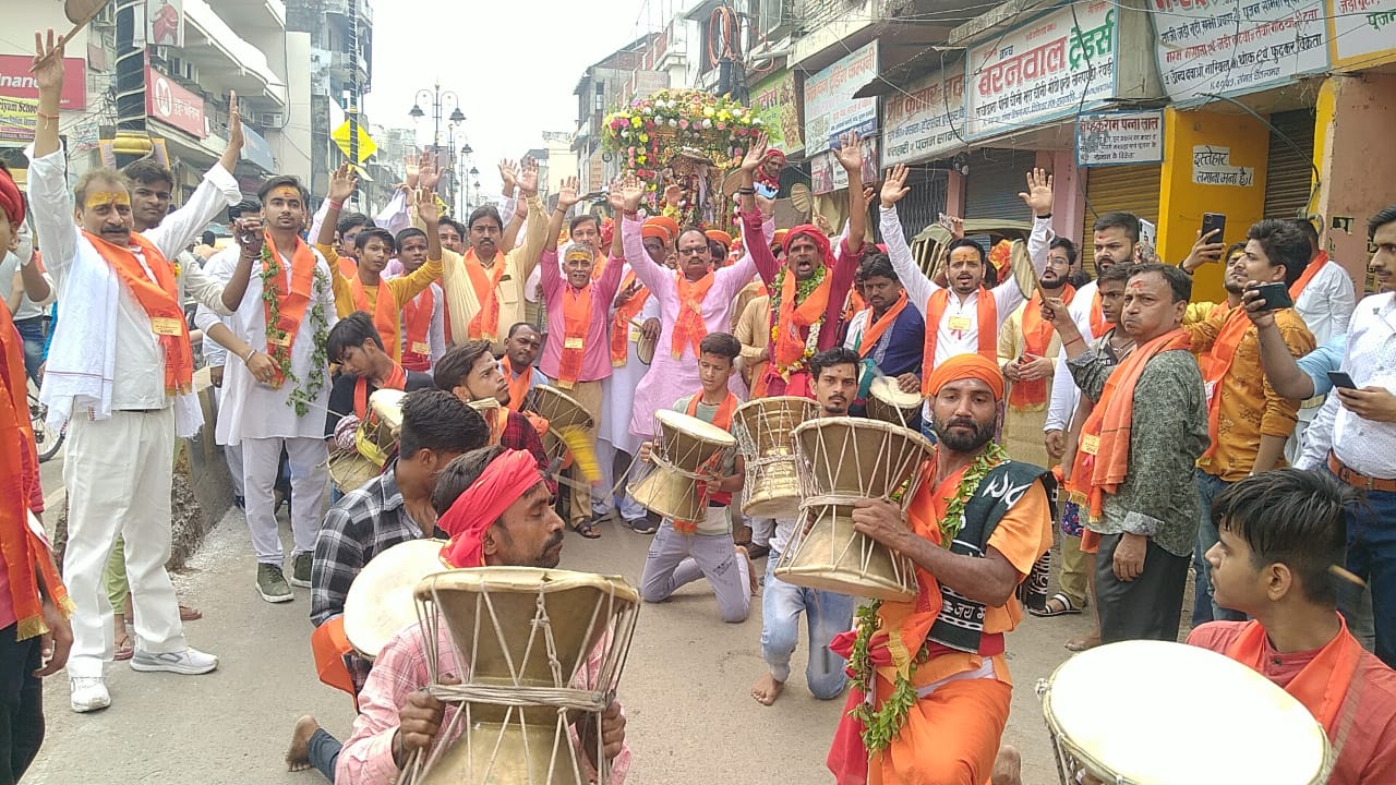 शोभायात्रा में आकर्षक झांकी तथा डमरू दल राहगीरों में आकर्षण,पूरे राह पुष्प वर्षा