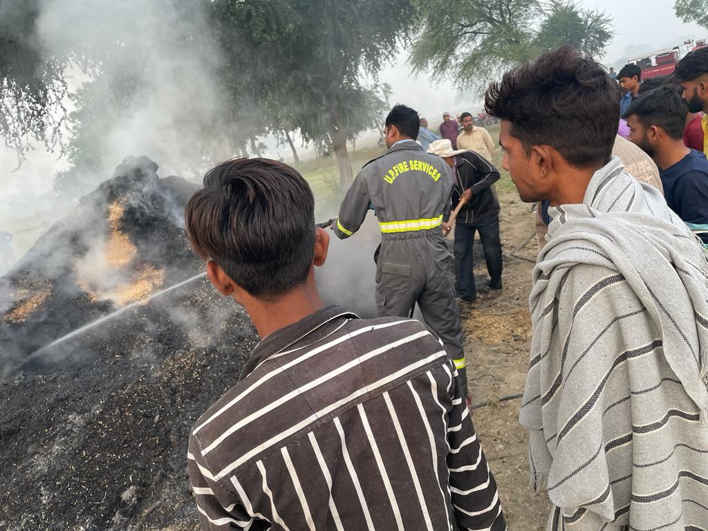 हाथरस (हि.स.)। कोतवाली हाथरस जंक्शन क्षेत्र में करीब छह से अधिक किसानों के भूसे और पुआल में आग लग गई। जिससे किसानों का लाखों रुपये का नुकसान हुआ है।