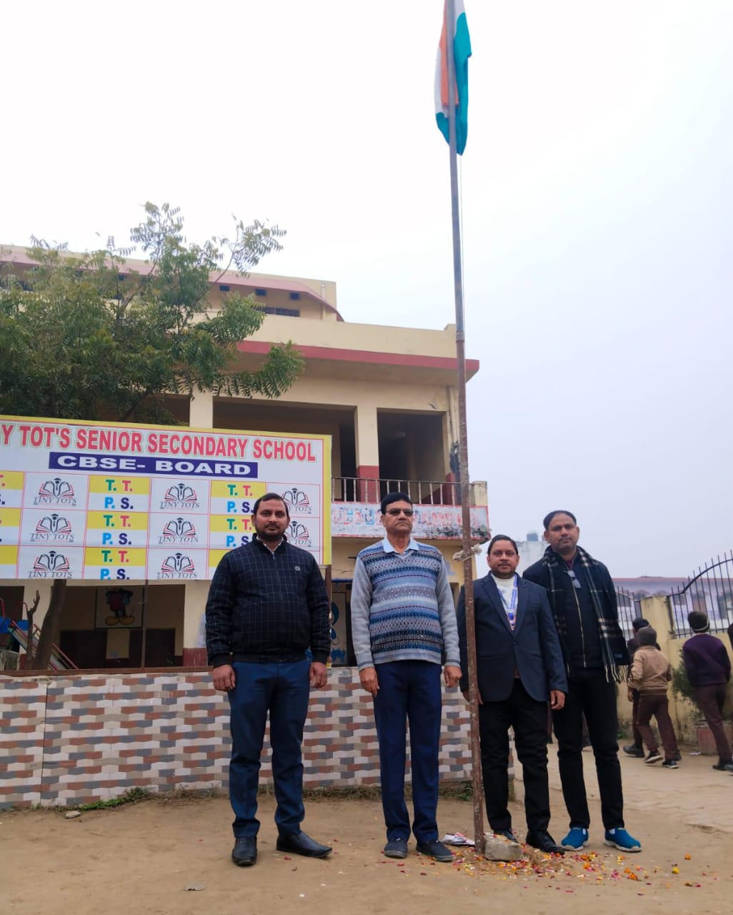 इसी कड़ी में नगर के प्रतिष्ठित शैक्षणिक संस्थान टाइनी टाट्स सीनियर सेकेंडरी स्कूल में भी गणतंत्र दिवस का पर्व धूमधाम के साथ मनाया गया। सर्वप्रथम विद्यालय के प्रबंधक मोहम्मद मोइन तथा प्रधानाचार्य मनीष कुमार सिंह के द्वारा ध्वजारोहण किया गया तथा विद्यालय की छात्रा शगुन गुप्ता, अनमता फातिमा, लाइबा खान व आर्या गोश्वामी ने मनमोहन ढंग से राष्ट्रीय गीत जन गण मन अधिनायक जया हे प्रस्तुत किया।