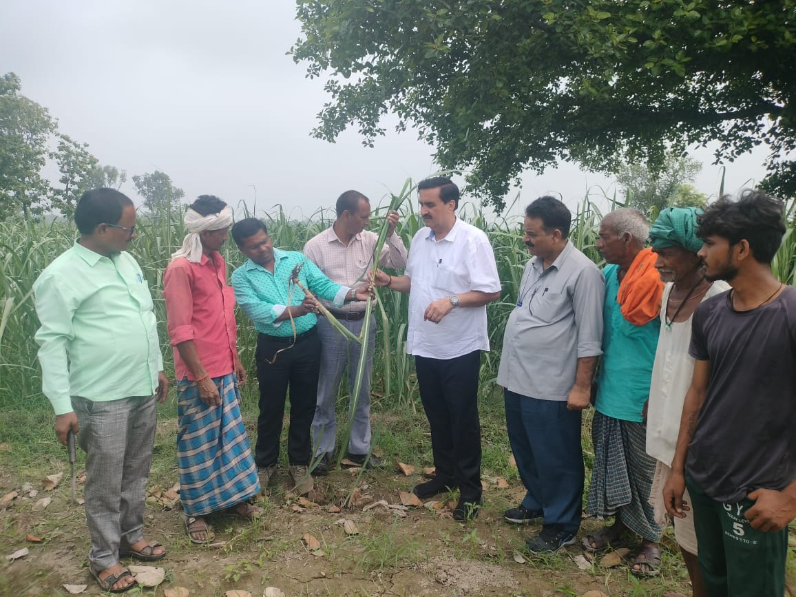इस दौरान महाप्रबंधक गन्ना संजीव कुमार शर्मा,सहायक महाप्रबंधक गन्ना आर एस मिश्रा, विजय कुमार पाण्डेय,बृजेश प्रताप सिंह,रामायन पाण्डेय व गन्ना टीम उपस्थित रही।क्षेत्र भ्रमण के उपरांत डॉ विनय मिश्रा ने बताया कि मिल परिक्षेत्र में गन्ना फसल विगत वर्षों से अच्छी दिख रही है कुछ क्षेत्रों में पोक्का बोईंग का आंशिक प्रकोप दिख रहा है।किसान भाई इसके रोकथाम लिए कॉपर ऑक्सिक्लोराइड 0.2 प्रतिशत अर्थात 100 लीटर पानी में 200 ग्राम दवा घोलकर छिड़काव करें या थायोफिनाईट मिथाइल (कवकनाशी) का छिड़काव करके भी पक्का बोइंग की रोकथाम की जा सकती है।