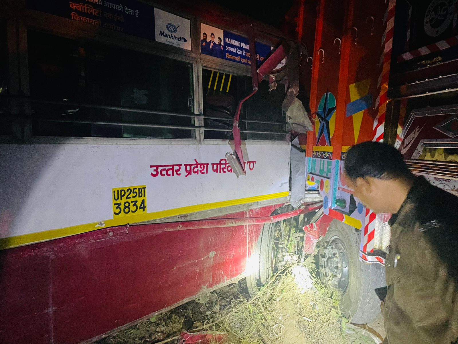 बदायूं डिपो की रोडवेज बस बदायूं से दिल्ली के आनंद बिहार जा रही थी। जैसे ही रोडवेज बस बदायूं दिल्ली हाइवे स्थित जरीफनगर थाना क्षेत्र के उस्मानपुर पेट्रोल पंप के पास पहुंची। तभी अचानक से रोडवेज बस के सामने एक गाय आ गई। गाय के बचाने के प्रयास में रोडवेज बस अनियंत्रित होकर पहले आलू से भरे कैंटर से टकराई। इसके बाद पेट्रोल पंप पर खड़े ट्रक में पीछे से घुस गई।