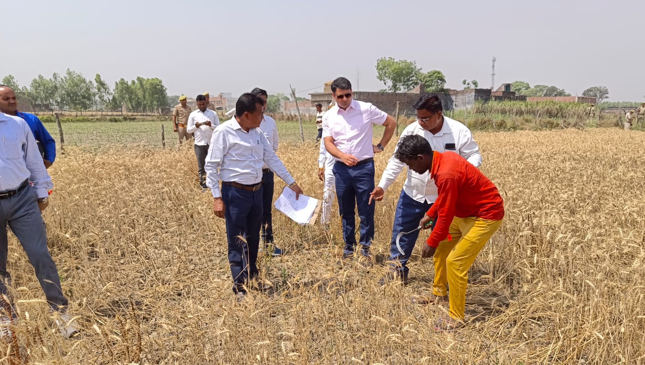 गेहूं उत्पादन के मूल्यांकन को लेकर डीएम की उपस्थिति में क्राप कटिंग