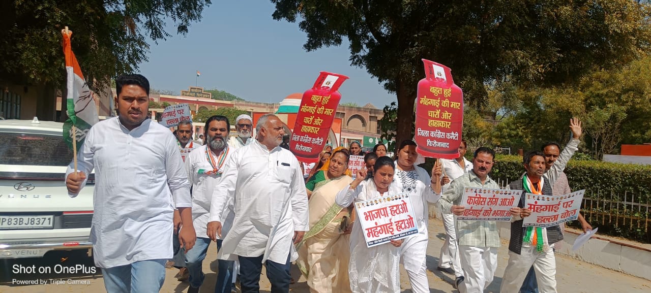फिरोजाबाद (हि.स.)। उत्तर प्रदेश कांग्रेस कमेटी के आह्वान पर जिला कांग्रेस कमेटी द्वारा केंद्र सरकार द्वारा घरेलू रसोई गैस सिलेंडर की कीमतों में 50 की तथा वाणिज्यिक सिलेंडर में 350.50 पैसे की वृद्धि के विरोध में जिला मुख्यालय दबरई पर विरोध प्रदर्शन किया गया।