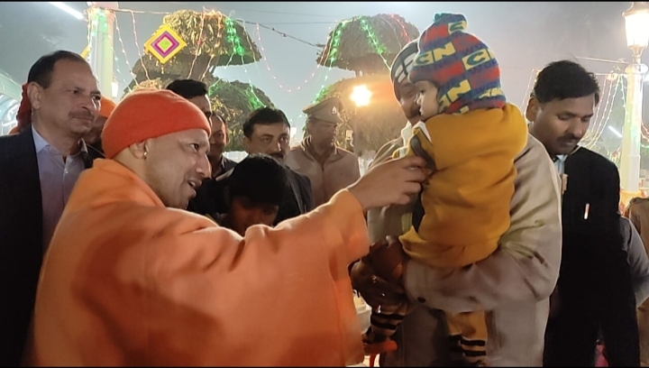 श्रद्धालुओं से मिले मुख्यमंत्री योगी, बच्चों को दुलारा