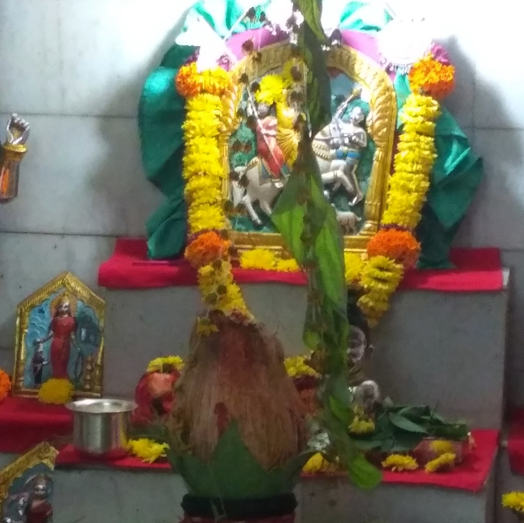 प्रथम नवरात्र पर घरों में बने मंदिरों में माता रानी सहित सभी देवी-देवताओं को नए-नए वस्त्र पहनाए। देवी-देवताओं को पुष्प, फल, मिष्ठान, फल इत्यादि चढ़ाए। कलश स्थापना करने के बाद गाय के गोबर से बने उपले पर अग्नि प्रज्वलित करके गायत्री मंत्र और दुर्गा माता के मंत्रों के साथ आहुति दी। इसके बाद भक्तों ने श्री दुर्गा चालीसा व श्री दुर्गा स्तुति, दुर्गा सप्तशती का पाठ किया और देवी-देवताओं की आरती की। घट स्थापना का पूजा करने के बाद भक्तों ने दूध चाय के साथ फलाहार ग्रहण किया और दिन भर माता रानी का उपवास रखा। शाम को पूजा-अर्चना करने के बाद भक्तों ने कुट्टू का प्रसाद खाकर पहले दिन का व्रत पूर्ण किया। महिलाओं ने सामूहिक रूप से घरों मंदिरों व पार्कों में माता रानी का संकीर्तन किया और फिर आरती के बाद प्रसाद वितरित किया।