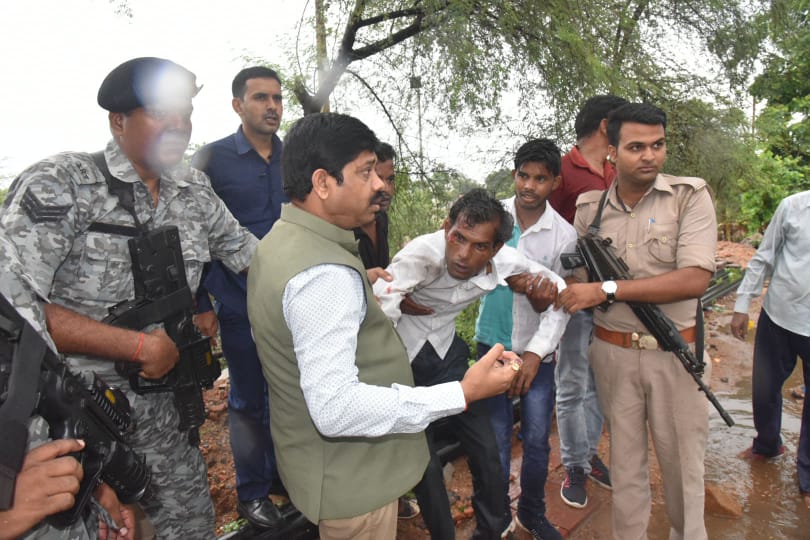 झांसी (हि. स.)। बुधवार को जनपद में आयोजित विभिन्न कार्यक्रमों में सम्मिलित होने के बाद प्रभारी मंत्री नंद गोपाल गुप्ता नन्दी जब लखनऊ जा रहे थे, उसी समय रास्ते में सड़क दुर्घटना में घायल एक युवक को तड़पते देखकर मंत्री नन्दी ने तत्काल गाड़ी रूकवा दी। बारिश के बीच स्वयं घायल युवक की मदद करने के लिए उतर गए। उन्होंने जिलाधिकारी व सीएमओ से बात कर घायल को बेहतर उपचार दिलाने के निर्देश भी दिए।